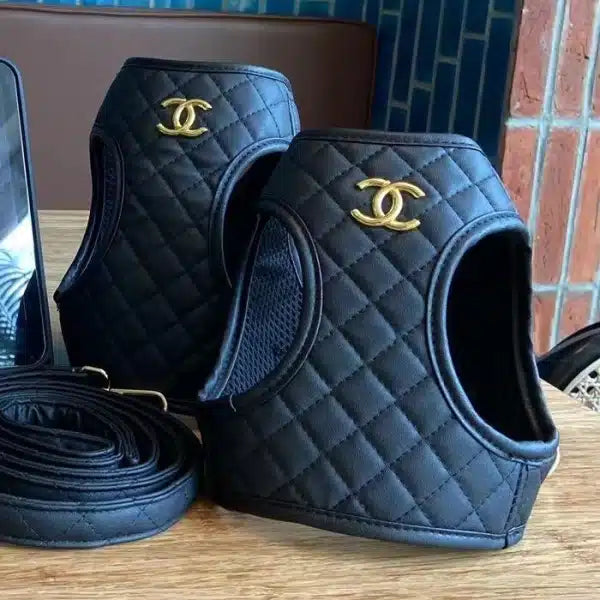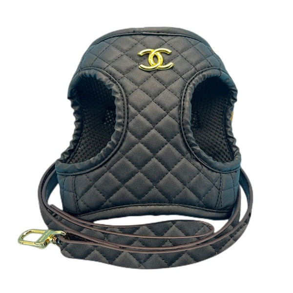 For strength and durability, our dog harness set is constructed from a tough PU Leather blend. The vest's adjustable design ensures a great fit, and its fashionable, opulent pattern was drawn from a well-known luxury brand.