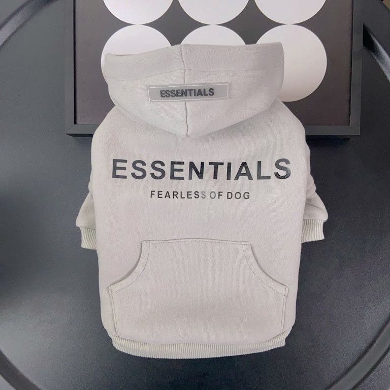 Introducing the designer grey dog hoodie, the perfect blend of style, warmth, and comfort for your furry friend. Made from high-quality cotton, this hoodie is designed to keep your dog cozy in colder weather while ensuring durability and easy maintenance. The hoodie features a sleek “essential” letter logo, giving your pet a trendy, designer-inspired look.