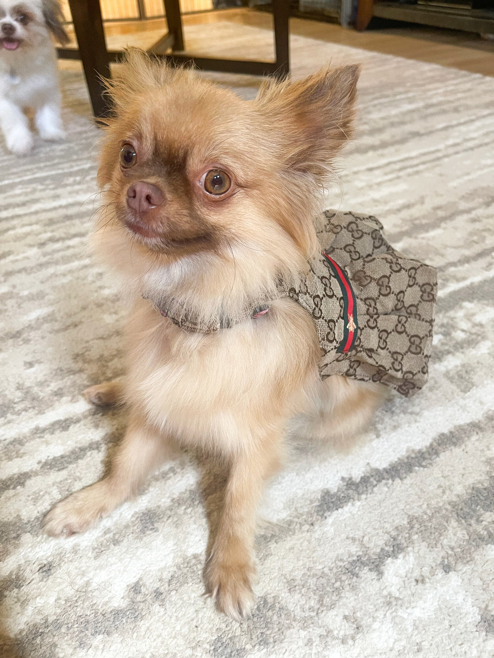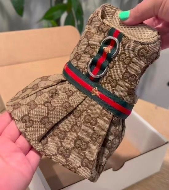 This sophisticated dog dress combines classic style with practicality. Crafted from a high-quality, non-stretch fabric, it offers a structured fit that holds its shape beautifully. The dress features a sleek, double D-ring design, making it perfect for attaching a leash or ID tags. For easy on and off, it’s equipped with a secure Velcro closure, ensuring a snug and comfortable fit for your pup.