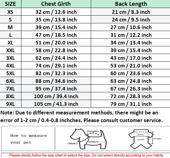 Available in XS to 9XL, this jacket is designed to fit small, medium, and large dogs comfortably. From tiny pups to large breeds, you’ll find a size that suits your dog perfectly. Suitable breeds include: